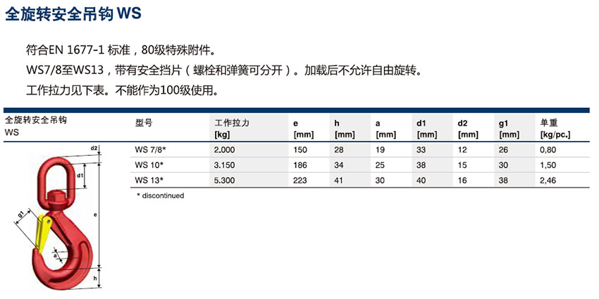 培瓦克Pewag全旋轉安全吊鉤WS