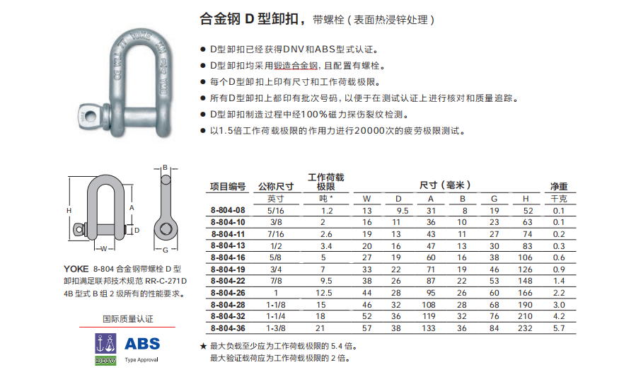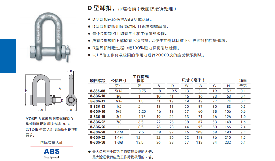 臺灣YOKE D 型卸扣( 表面熱浸鋅處理 )