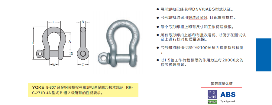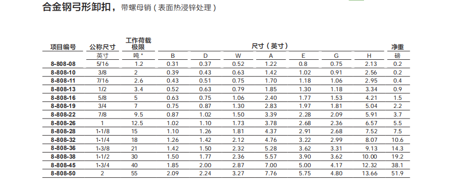 臺(tái)灣YOKE合金鋼弓形卸扣 ( 表面熱浸鋅處理 )
