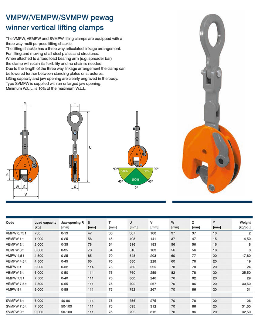 pewag培瓦克豎吊起重鋼板鉗VMPWVEMPWSVMPW型